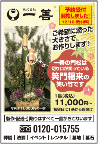 一善の門松、しめ縄、鏡餅のご予約、お問合せは