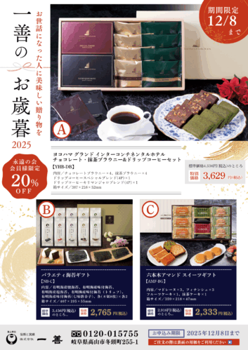 一善では「永遠の会」会員様向けに厳選した「お歳暮」のご提供を開始いたしました。